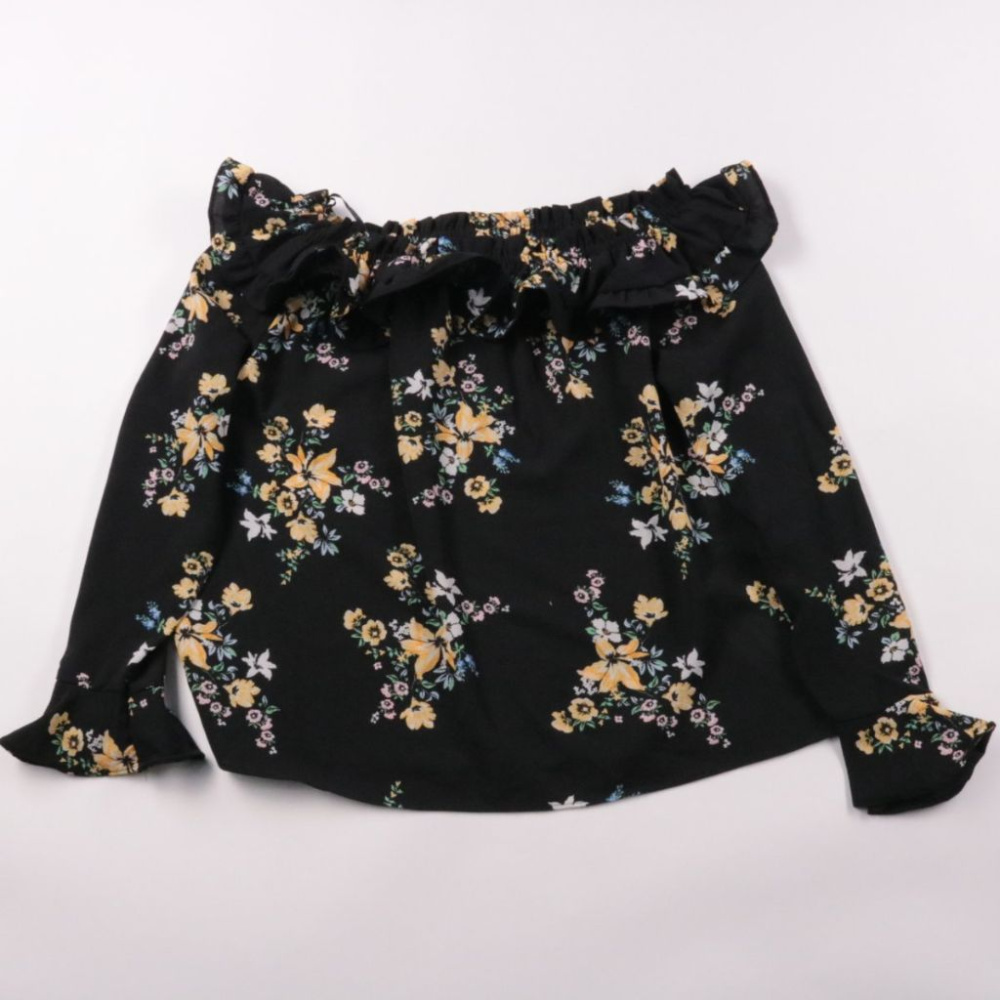 Блузка H&M для девочки с цветочным принтом и эластичной сборкой по горловине и низу рукавов. Подойдёт для школы и прогулок, легко сочетается с джинсами или юбкой. Ткань тянется за счёт эластана и не сковывает движения.