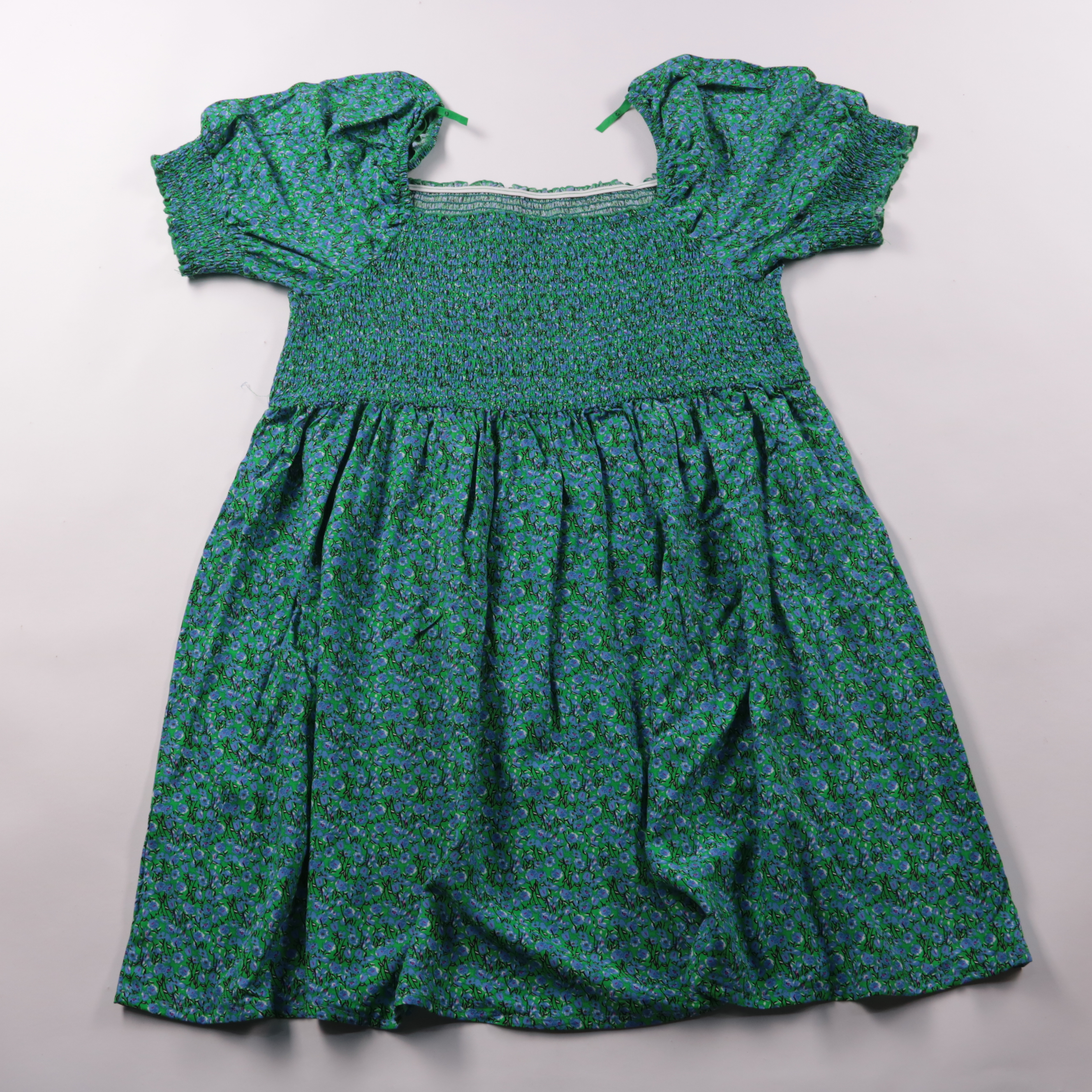 Платье Edited для девочки из 100% вискозы, зелёное с мелким цветочным принтом и сборкой на груди (смокинг). Подойдёт для лета, прогулок и праздников. Лёгкая ткань хорошо дышит и комфортна в жару.