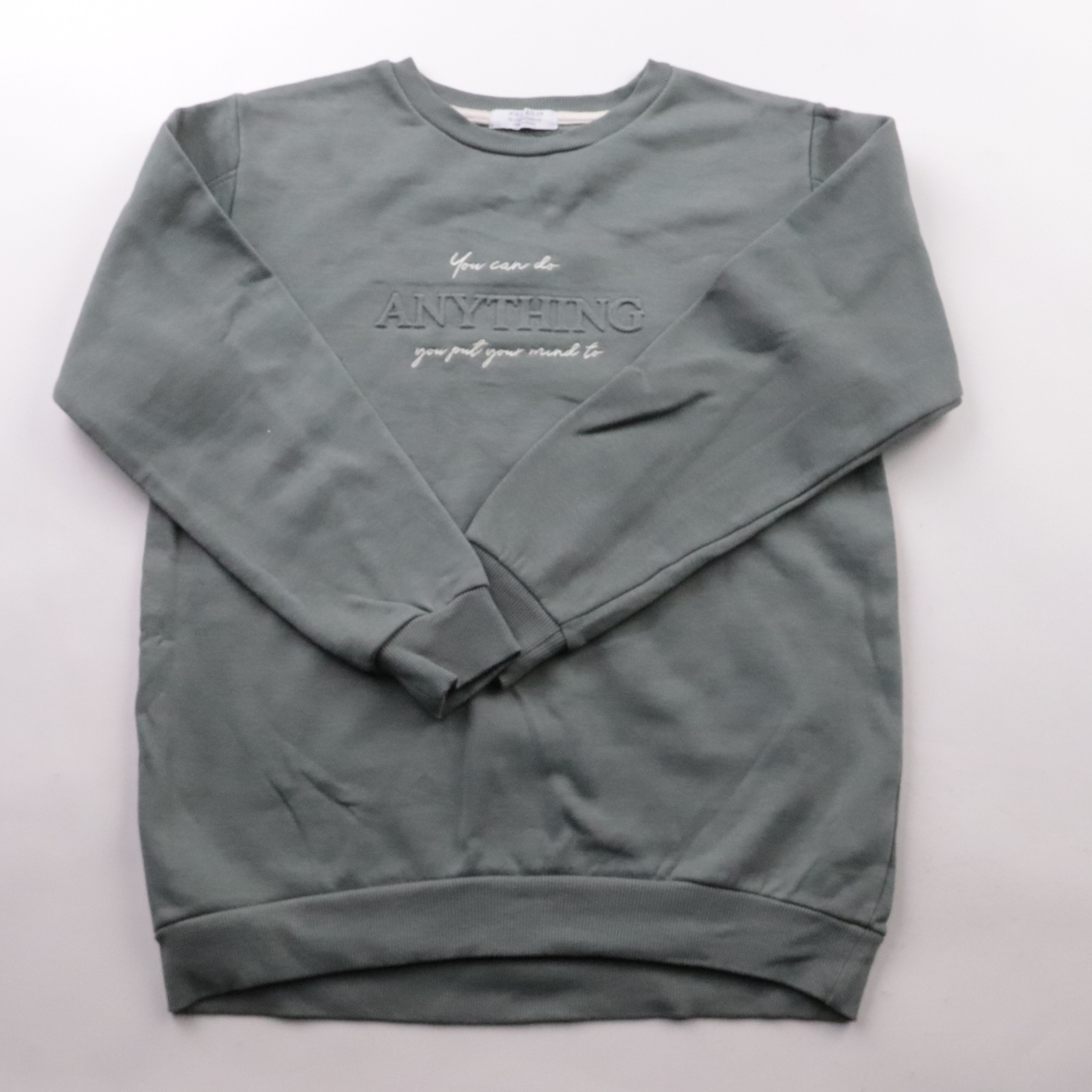 Свитшот Primark серого цвета с вышитой надписью спереди. Подойдёт девочке на каждый день в школу или на прогулку в прохладную погоду, удобно носить с джинсами и леггинсами. Трикотаж с мягкой изнанкой приятен к телу и хорошо держит тепло.