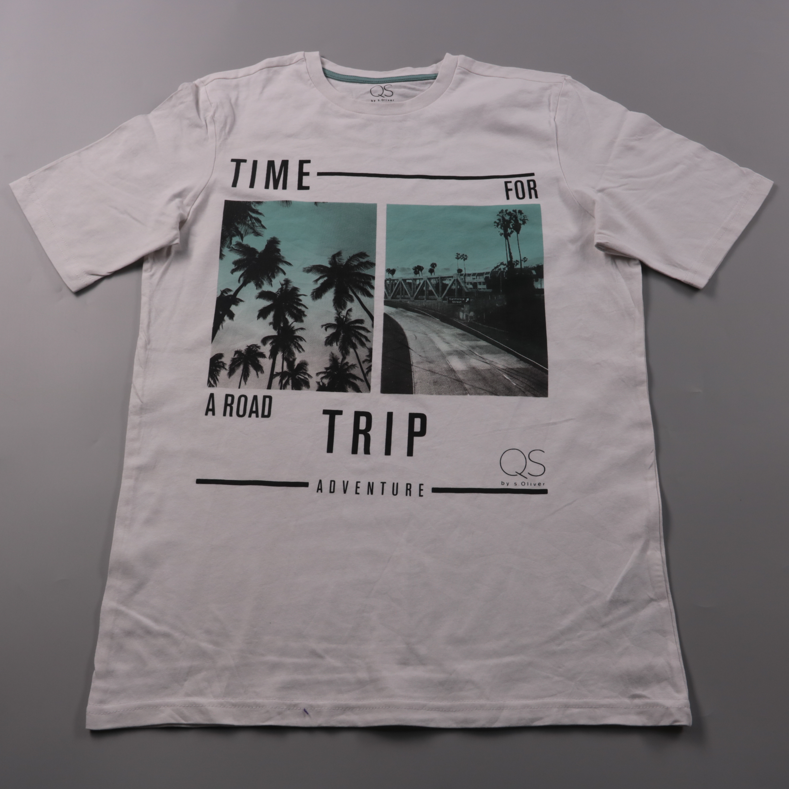 Футболка QS by s.Oliver белого цвета с принтом «Time for a road trip». Подойдёт для повседневной носки летом и в качестве первого слоя в прохладное время. Хлопковая ткань хорошо дышит и комфортна в течение дня.
