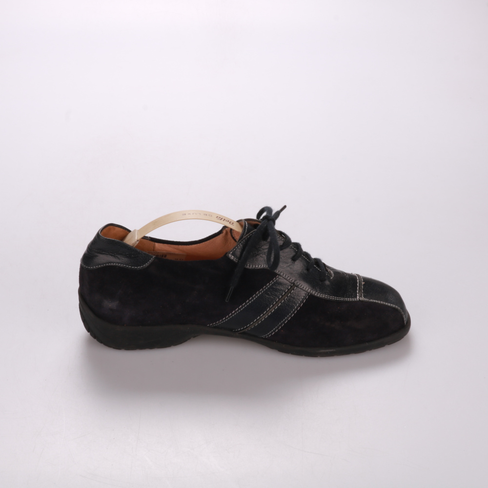 Мужские кроссовки Luftpolster из чёрной кожи со шнуровкой и аккуратной строчкой. Подойдут на каждый день и для длительных прогулок, нейтральный дизайн легко сочетается с джинсами и брюками. Упругая подошва с рельефным протектором даёт хорошее сцепление...