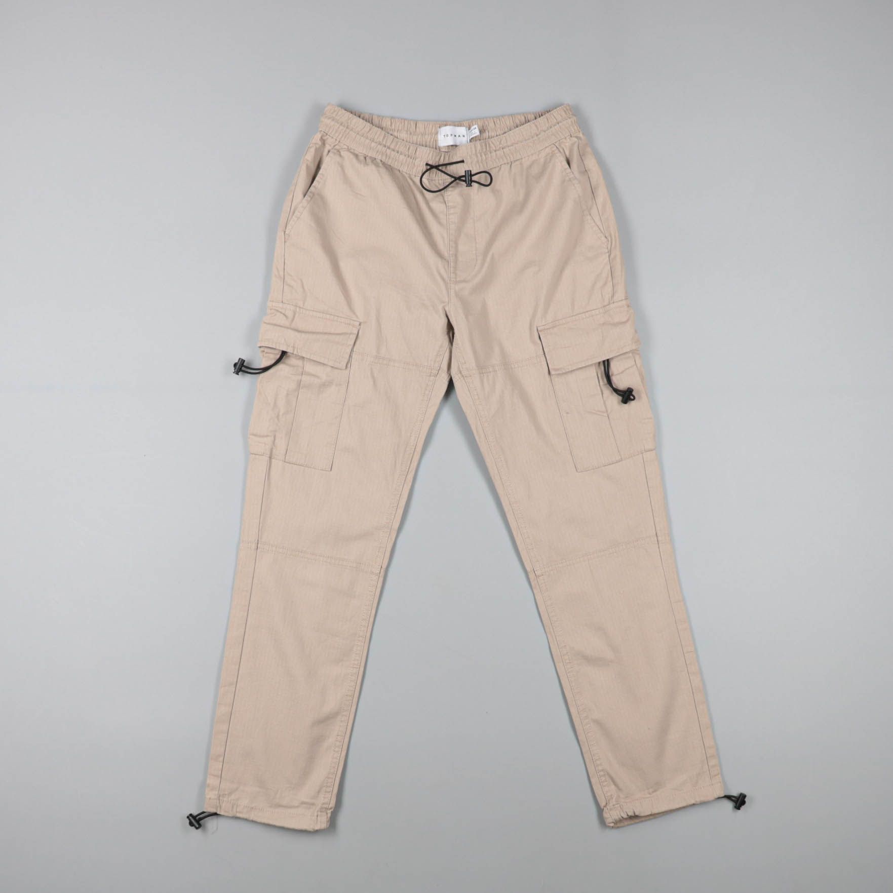 Брюки TOPTEN в бежевом цвете, карго-кроя с эластичным поясом и шнурком. Подойдут для повседневных образов и поездок, когда нужны вместительные карманы и свобода движений. Низ регулируется утяжками, поэтому можно подстроить посадку под кроссовки или бот...