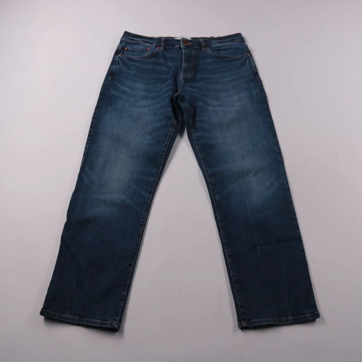 Мужские джинсы Easy Straight Fit из синего денима с лёгким эффектом потертости. Подойдут на каждый день и для casual-образов, прямой крой удобно садится по фигуре. Ткань со стрейчем (эластан) даёт больше свободы движений.