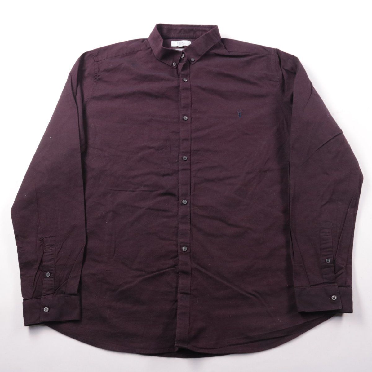 Мужская рубашка Next Slim Fit бордового цвета с длинным рукавом и воротником на пуговицах. Подойдёт для офиса и повседневных образов, хорошо смотрится как с джинсами, так и с классическими брюками. Практичный плюс — тёмный оттенок менее маркий и легко сочетается с базовым гардеробом.