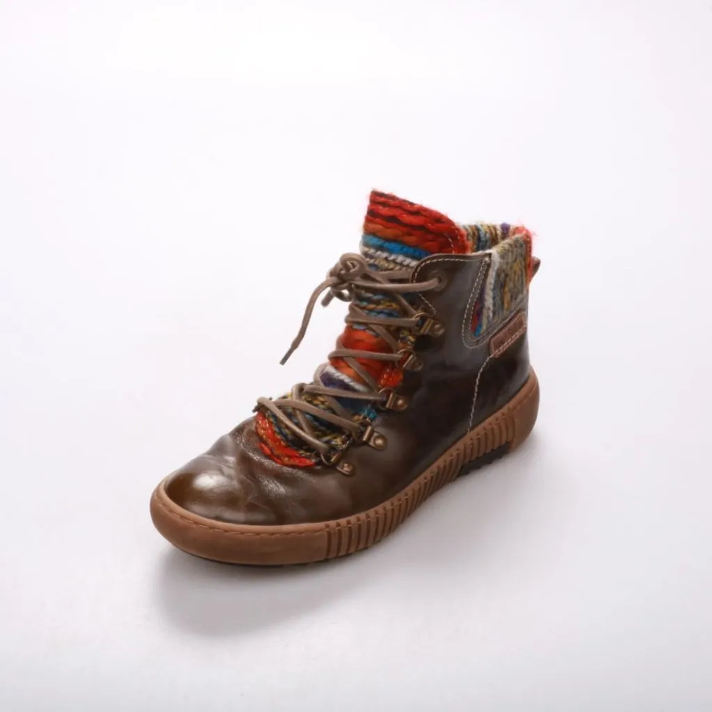 Женские ботинки Josef Seibel из коричневой кожи со шнуровкой и текстильными вставками у голенища. Подойдут для повседневной носки в прохладную погоду и поездок по городу. Рифлёная подошва даёт хорошее сцепление и устойчивость.