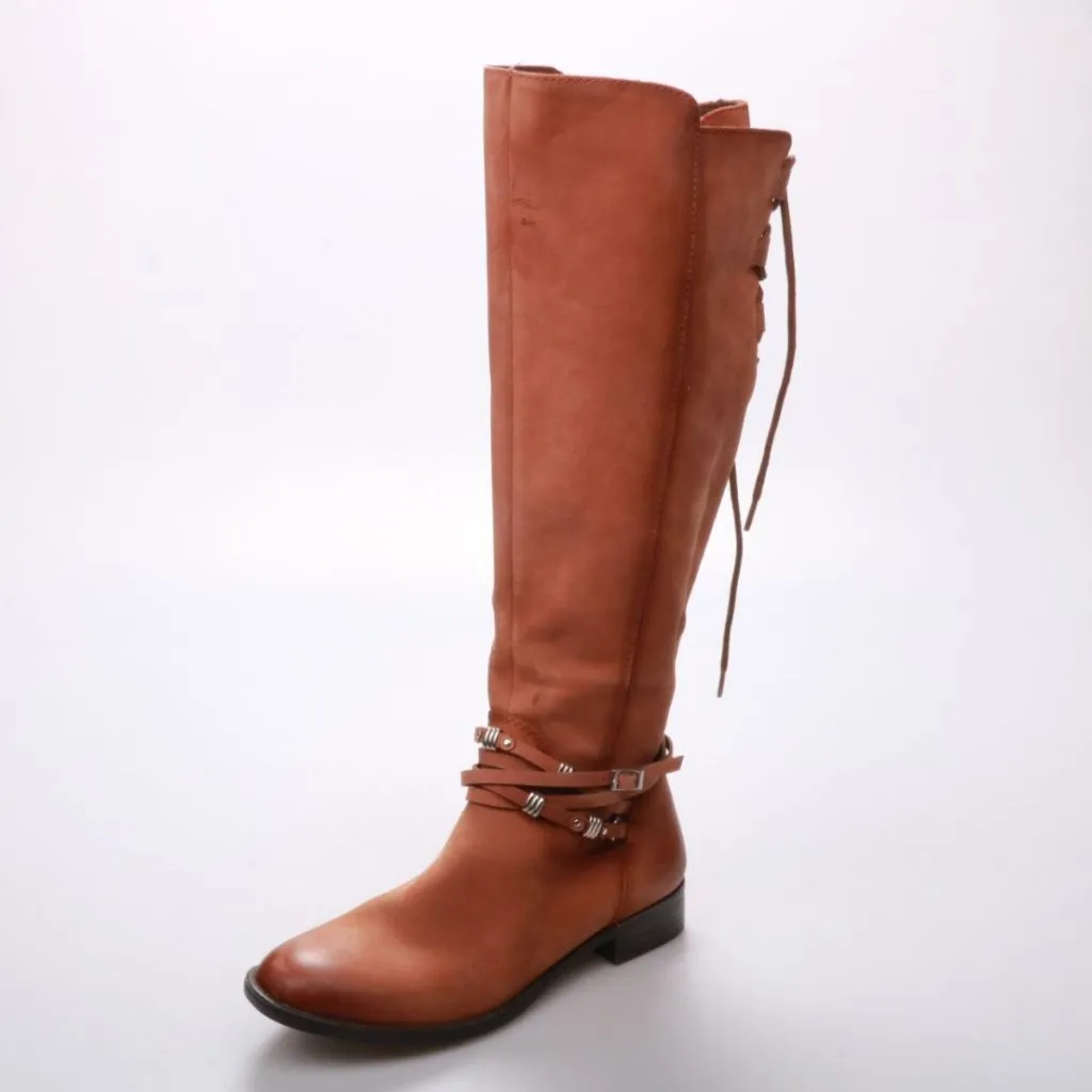 Женские сапоги Tamaris из гладкой коричневой кожи, с высоким голенищем, боковой молнией и шнуровкой сзади для регулировки по икре. Подойдут для повседневной носки в городе в демисезон. Практичное преимущество — удобно надевать за счёт молнии и можно по...