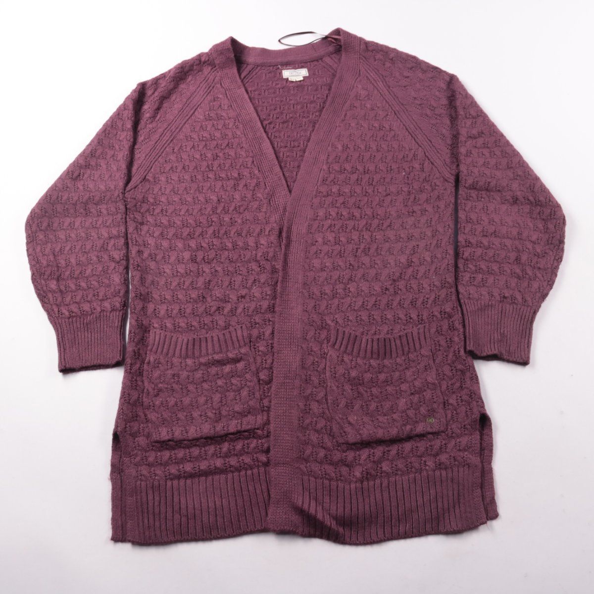 Вязаный кардиган FatFace винного оттенка с фактурной вязкой и V-образным вырезом. Подойдёт для прохладной погоды и многослойных образов, удобно носить с топами и рубашками. Практичная деталь — два накладных кармана спереди.