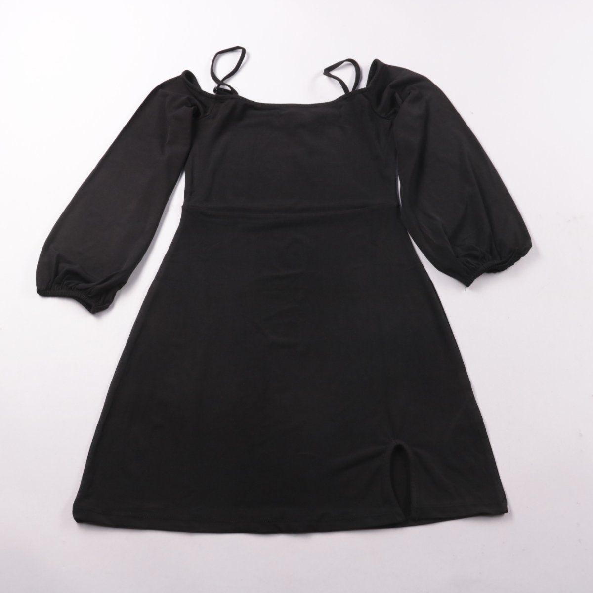 Повседневное платье NA-KD Reborn в чёрном цвете с квадратным вырезом и объёмными рукавами. Подойдёт для повседневных образов и на выход, легко сочетается с обувью на каблуке и с кедами. Эластичный материал комфортно садится по фигуре.