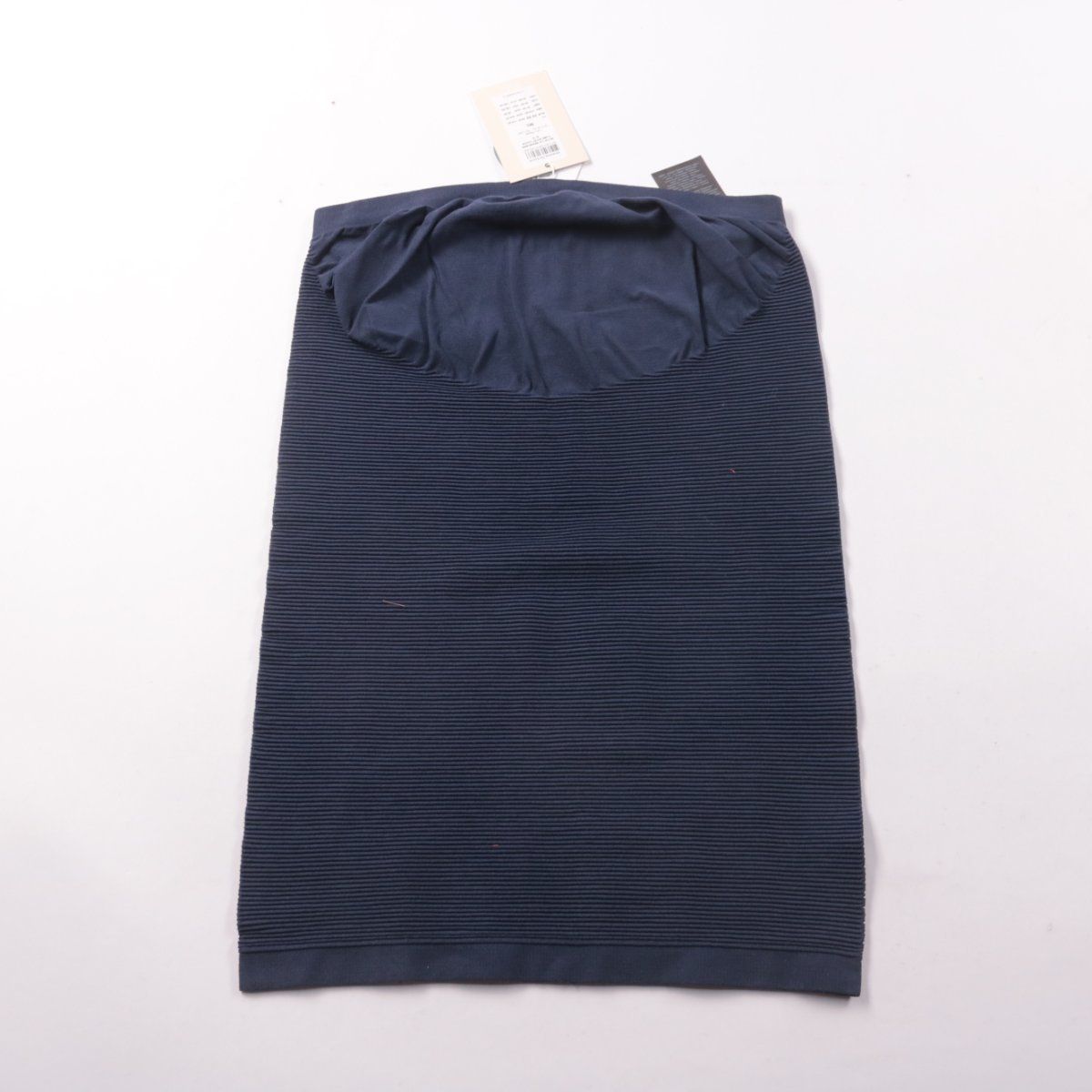 Юбка Mamalicious без швов, модель tube, в тёмно-синем цвете с фактурной вязкой в рубчик. Подойдёт для повседневных и более аккуратных образов с рубашкой или джемпером. Эластичный материал хорошо тянется и комфортно садится по фигуре.